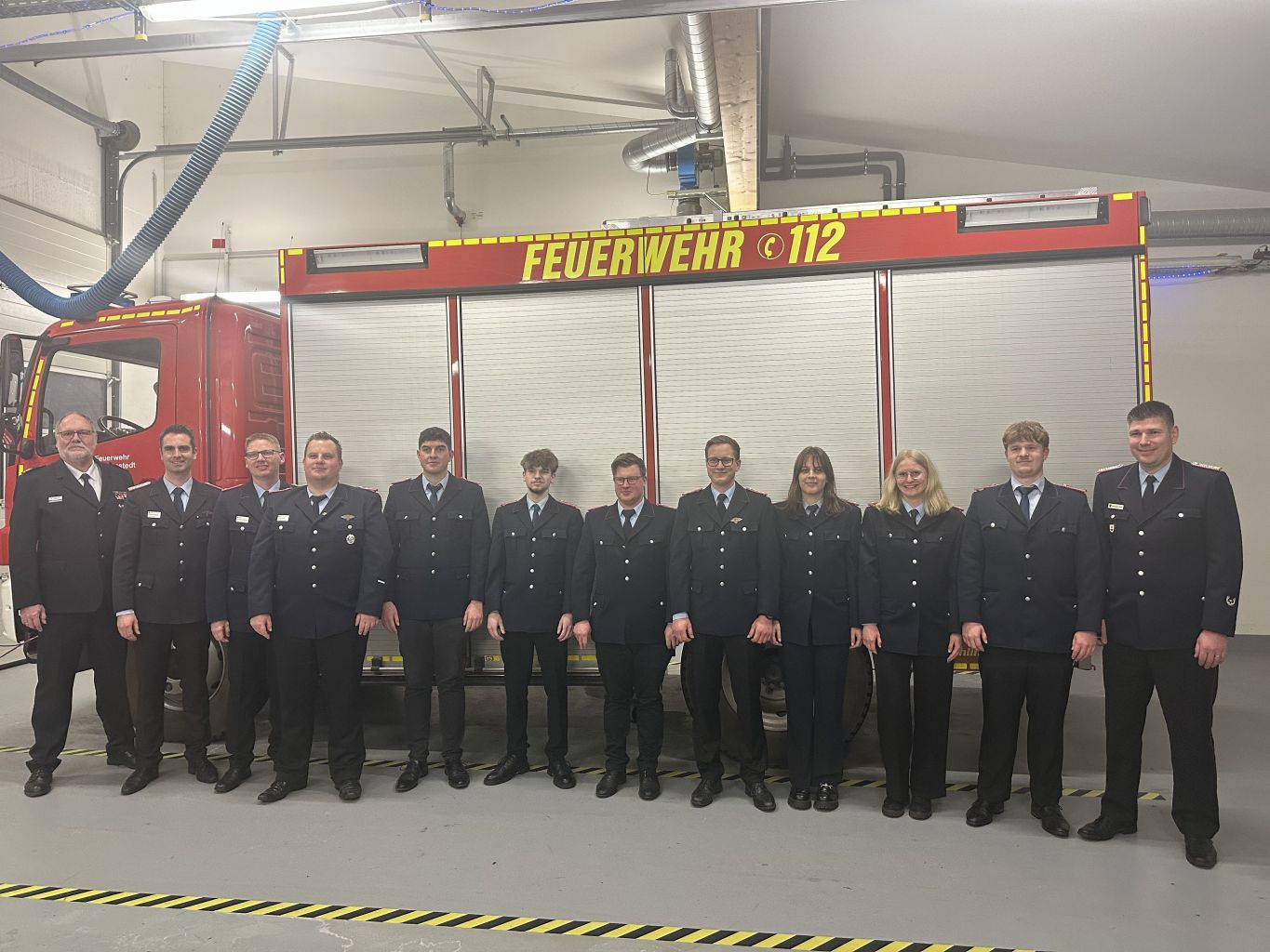 Gemeindebrandmeister Sebastian Seier gab einen umfassenden Einblick in das Geschehen der Samtgemeindefeuerwehr. Ein großes Thema der Zukunft ist die Bekämpfung von Vegetationsbränden. Hier wird die Feuerwehr Brackel eine Rolle übernehmen: Das überarbeitete Tanklöschfahrzeug (TLF Wald) wird derzeit neu aufgebaut und soll 2026 ausgeliefert werden.Im Anschluss führte Sebastian Seier folgende Beförderungen durch: Tobias Wiegel zum Oberbrandmeister, Torben Fey zum Löschmeister, Jule-Sophie Hauptmeier und Lilli-Sophie Pilathzur Oberfeuerwehrfrau, Gianluca Johanns und Henning Rogge zum Hauptfeuerwehrmann, Emmanuel Paul Johanns, Liam Longhurst, Mats Bennet Wagner zum Feuerwehrmann.