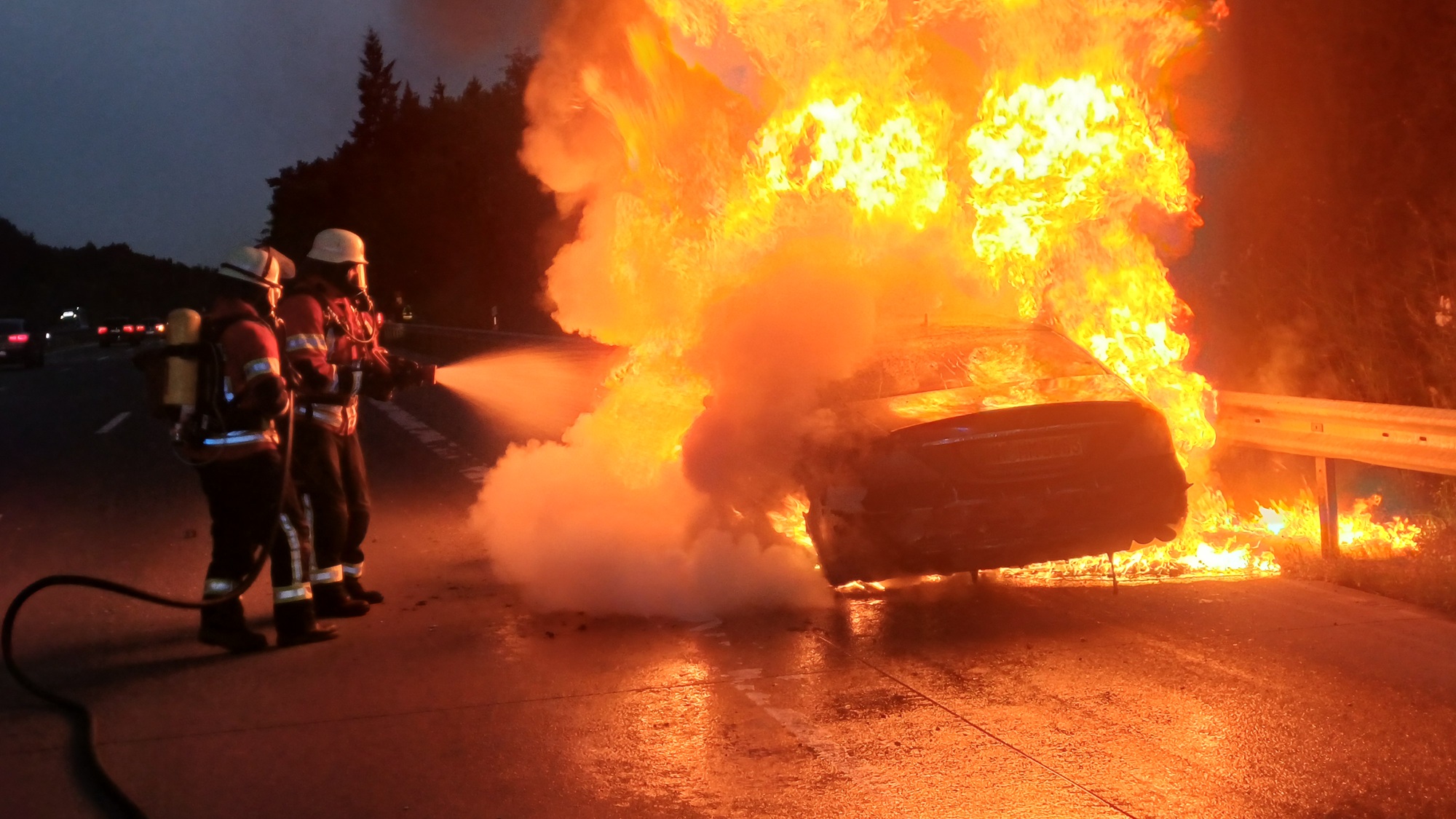 19.08.2025 Feuer PKW/MotorradEin in voller Ausdehnung brennender PKW beschäftige am Dienstagabend Feuerwehr und Polizei. Gegen 20:45 Uhr befuhr ein Mann aus Hamburg mit seinem Mercedes Sportcoupé die Bundesautobahn BAB 7 von Hamburg kommend in Richtung Hannover. Zwischen den Anschlussstellen Thieshope und Garlstorf bemerkte er Brandgeruch am Fahrzeug, brachte das Fahrzeug auf dem Standstreifen zum Stehen und rettete sich unverletzt ins Freie. Schnell stand der Mercedes in Vollbrand, sodass zahlreiche Notrufe in der Rettungsleitstelle eingingen. Innerhalb weniger Minuten war die Freiwillige Feuerwehr Brackel vor Ort und begann mit den Löscharbeiten. Dabei schützten sich die Einsatzkräfte mit umluftunabhängigem Atemschutz vor dem Brandrauch. Mit einem Schnellangriffsschlauch und anschließend mit einem Schaumrohr wurde der Brand bekämpft und abgelöscht. Durch den schnellen Einsatz konnten die Einsatzkräfte noch einige persönliche Dinge des Fahrers aus dem Fahrzeug retten. Während der Löscharbeiten mussten zwei der drei Fahrspuren gesperrt werden, wodurch es zu leichten Verkehrsbehinderungen kam. Nach Abschluss der Löscharbeiten wurde die Einsatzstelle an die Polizei übergeben.